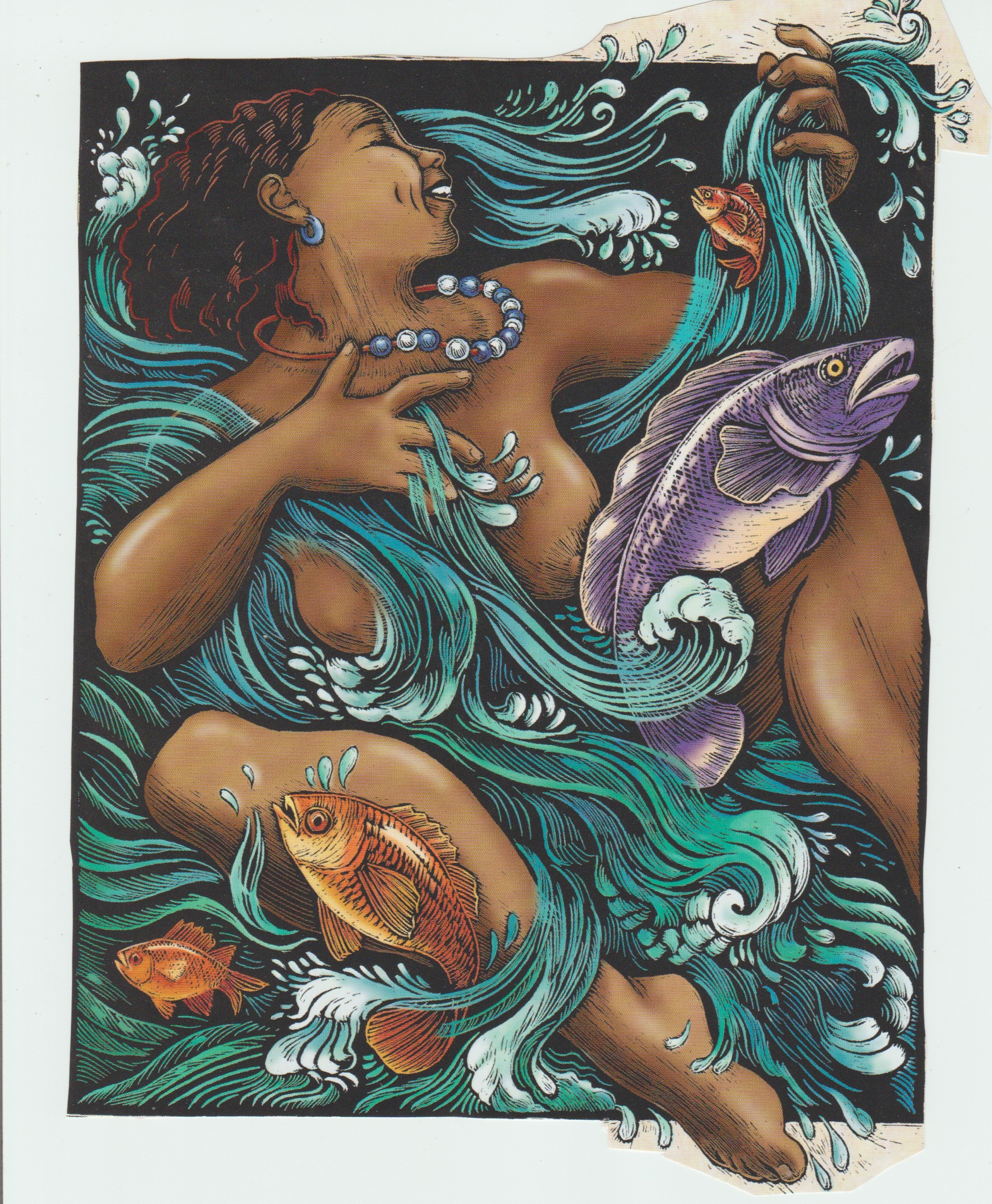 When the Yoruban people were enslaved, their Goddess went with them, sustaining them with life even in the face of the darkest times, in the new world. When her people were brought to the Americas, Ymoja became known as Yemaya, the "Mother of the Ocean", for this was the first time that her people had came into contact with the ocean. As the Yoruban people were not allowed to practice their beliefs in this new world, they merged their deities with images of Catholic saints, and subsequently created a number of new religions - Santeria in Cuba, Voudoun in Haiti, Macumba in Brazil, and Candomble in Bahia. Within all these differing religions, Yemaya is still revered as a powerful deity.